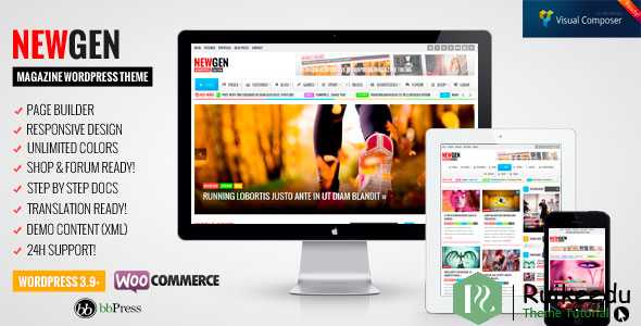 Newgen响应新闻/杂志WordPress主题Page Builder Mega菜单评论系统自定义边栏兼容!Woocommerce Shop兼容!Bbpress论坛兼容!活动清单!完全响应无限主题颜色9页面模板4帖子格式:帖子,图像,视频,音频80+主题选项8自定义小部件。