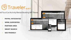 Traveler WordPress主题, 旅游酒店预订主题,主要特点:响应设计,友好的选项面板,Paypal...